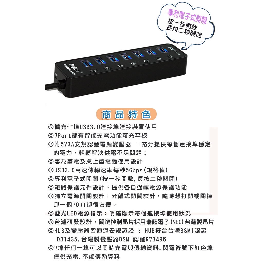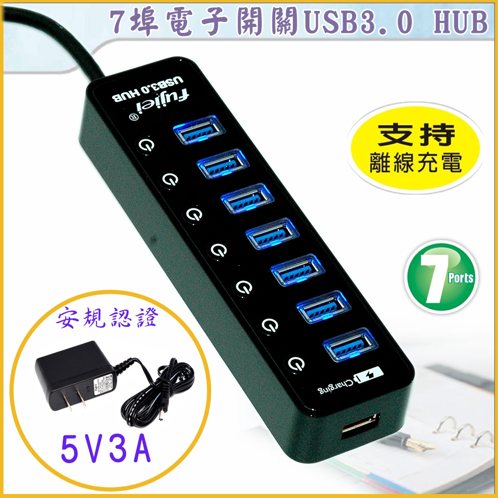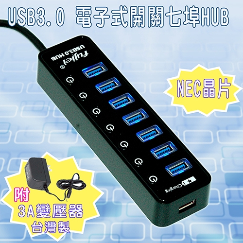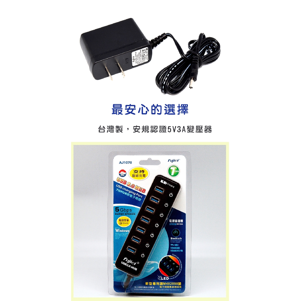 Fujiei 力祥 AJ1078 7埠HUB 帶開關 USB3.0 集線器 HUB 附5V 3A變壓器 /紐頓e世界