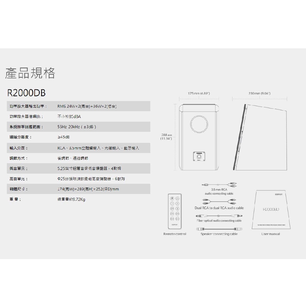 EDIFIER 漫步者 R2000DB 主動式二聲道 喇叭 3.5mm RCA 光纖 藍牙 音響 /紐頓e世界