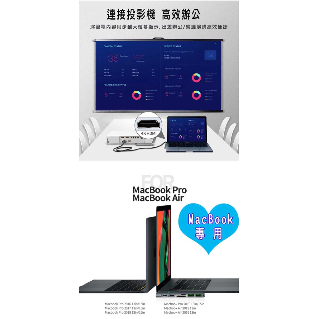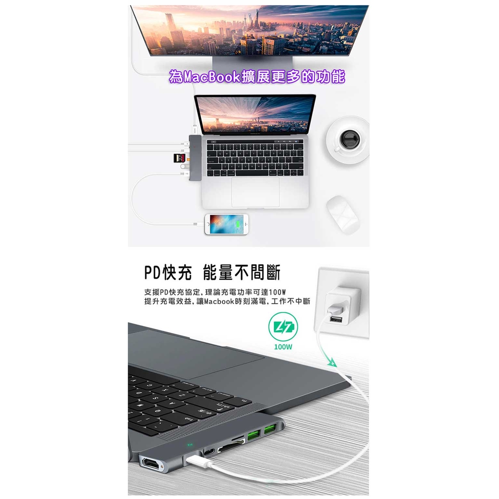 fujiei TY1035 Macbook專用雙頭Type-C 多功能7合一擴充轉換器