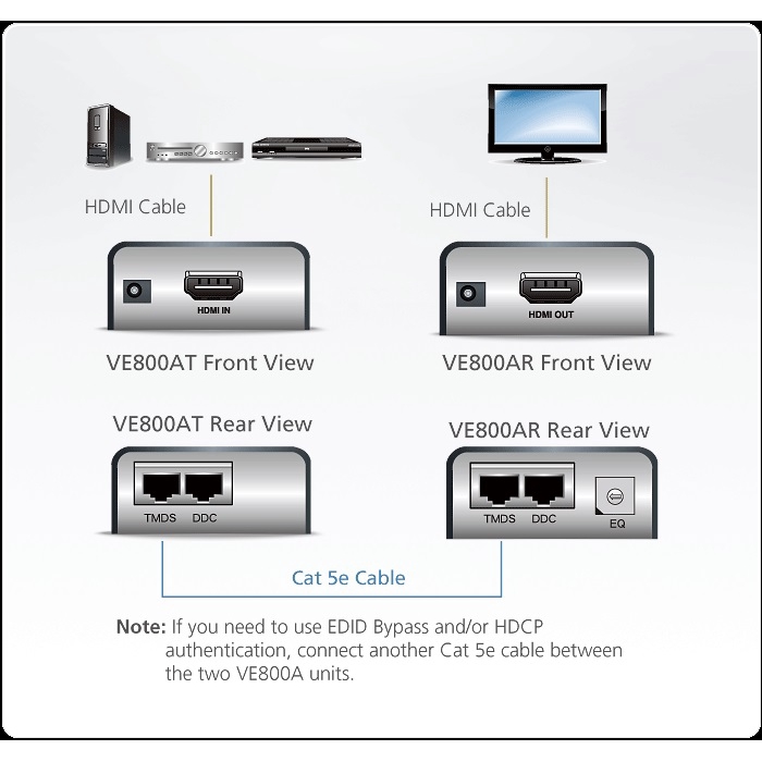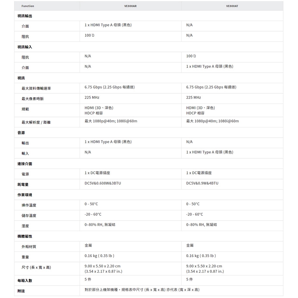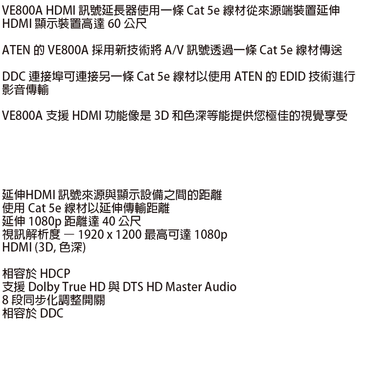 ATEN 宏正 VE800A HDMI Cat 5e 視訊延長器 1080p 最大延長距離40公尺 支援HDCP
