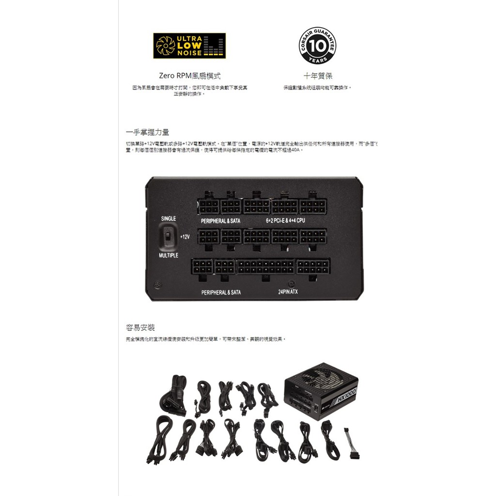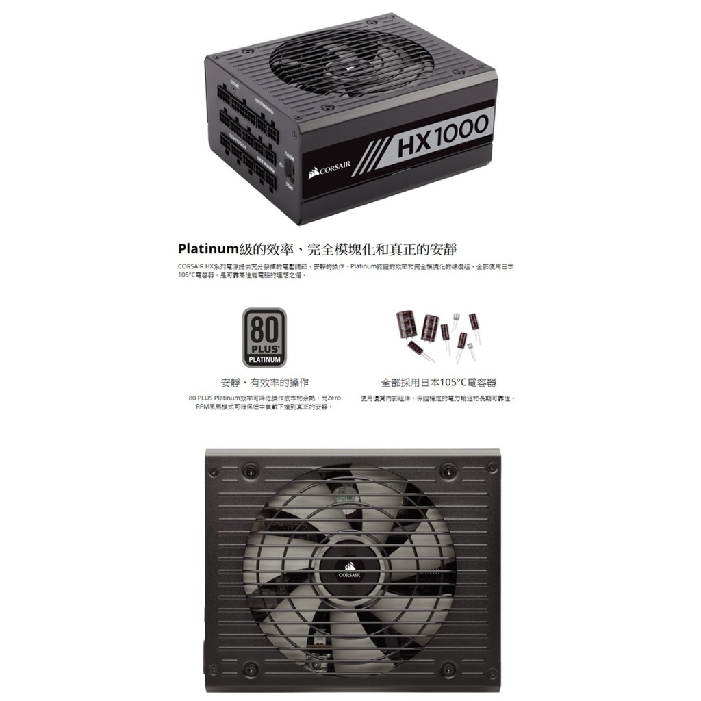 Corsair 海盜船 HX1000 80+ 白金 1000W 電源供應器 /紐頓e世界