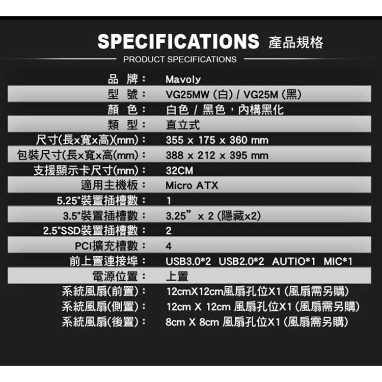Mavoly 松聖 VG25MW 葡萄柚 白色 一大2小 Micro ATX 電腦機殼 / 紐頓e世界