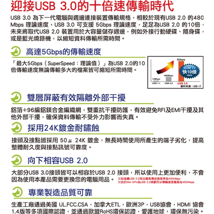 i-gota USB 3.0 電腦傳輸線 1.8米
