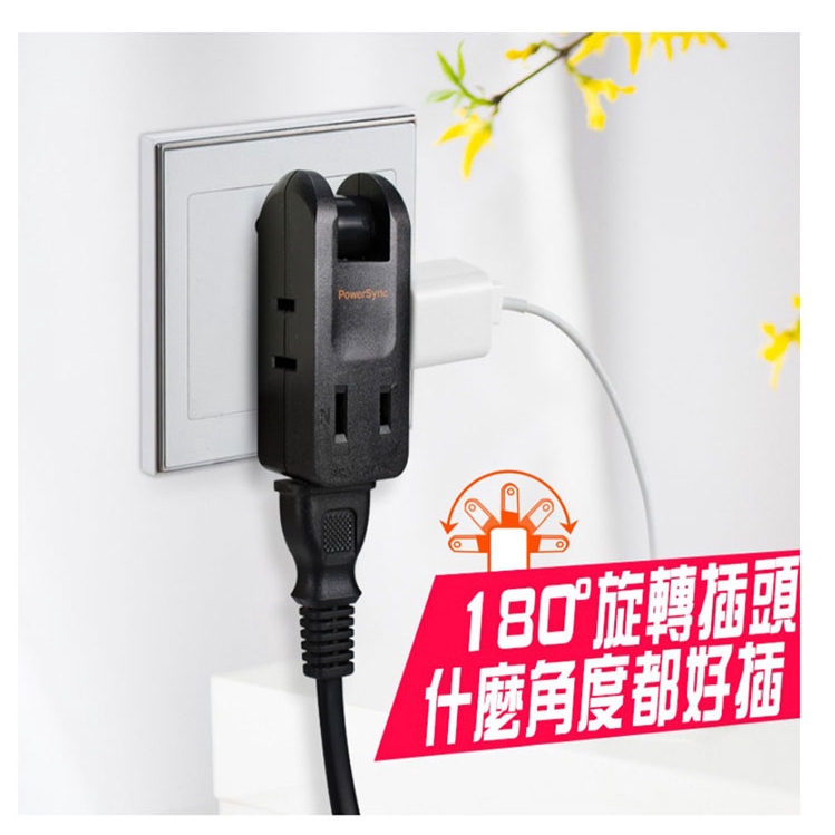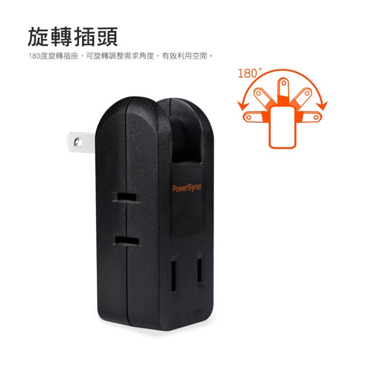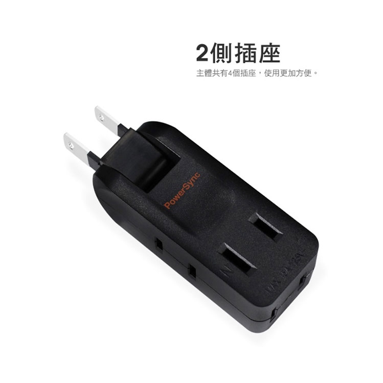 PowerSync 群加 包爾星克 TC4P0N 2P 4插 防雷擊 180度旋轉 壁插 黑色