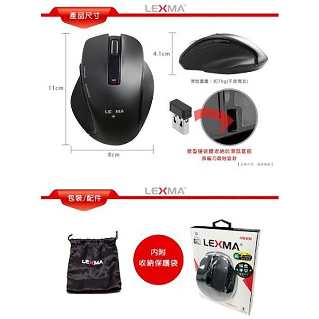 LEXMA 雷馬 M830R USB無線 藍光 滑鼠 大手適用 黑色 /紐頓e世界