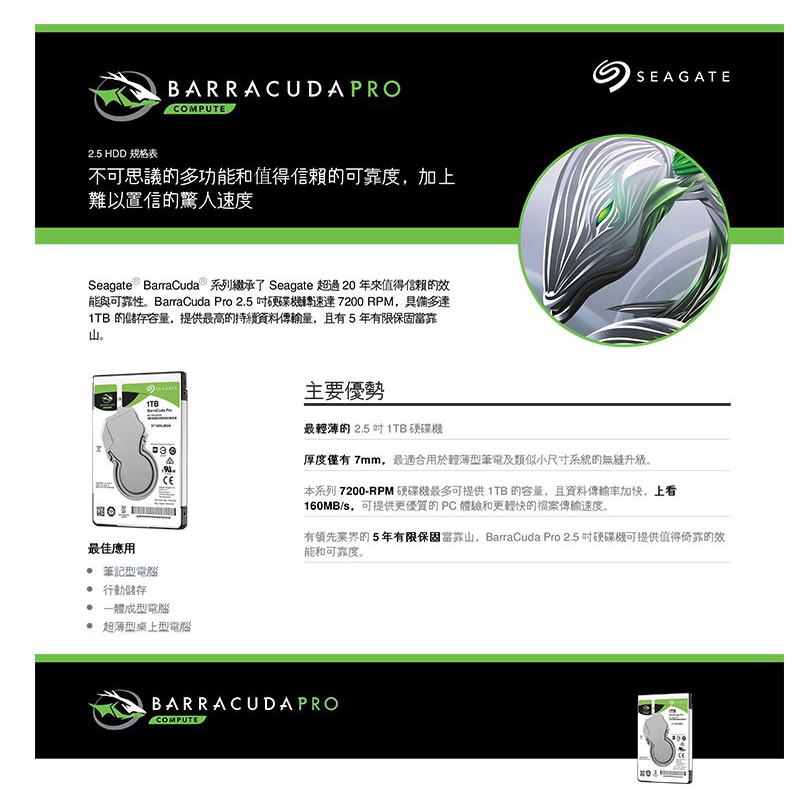 Seagate 希捷 BarraCuda 新梭魚 Pro 1TB 2.5吋 7mm 內接硬碟 ST1000LM049