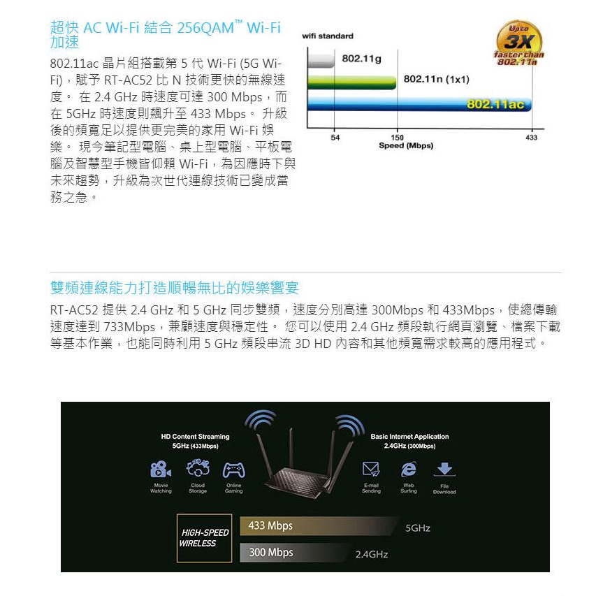 ASUS 華碩 RT-AC52 AC750 四天線 雙頻無線 WIFI 5 路由器 紐頓e世界