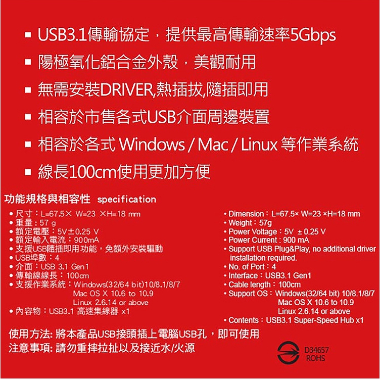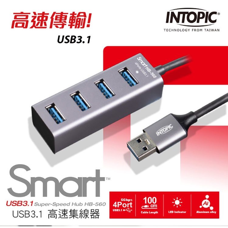 INTOPIC 廣鼎 HB-560 4埠 HUB USB3.1 高速集線器 /紐頓e世界