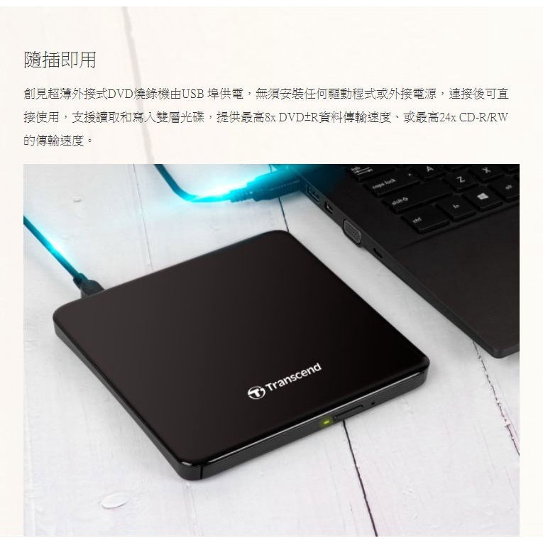 Trancsend 創見 極致輕薄 1.39cm TS8XS 外接式 光碟機 DVD 燒錄器 TS8XDVDS