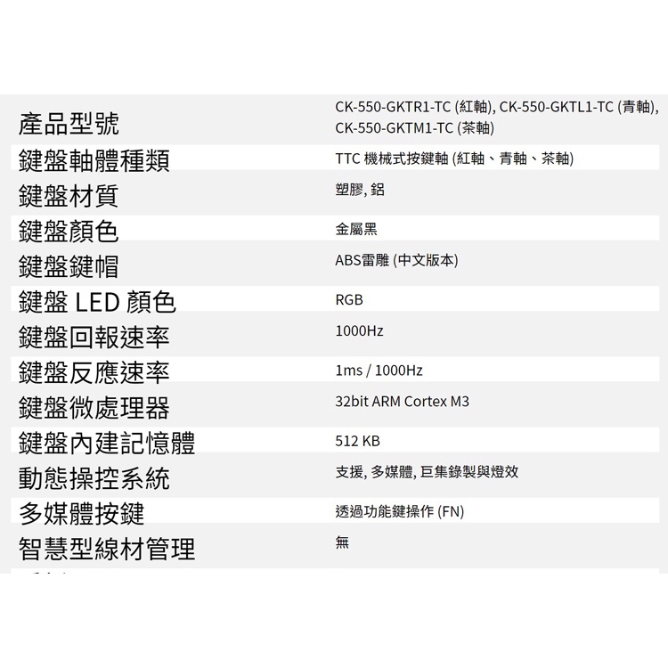 Cooler Master 酷碼 CK550 V2 RGB 機械式 電競鍵盤 內建TTC鍵盤軸 /紐頓e世界