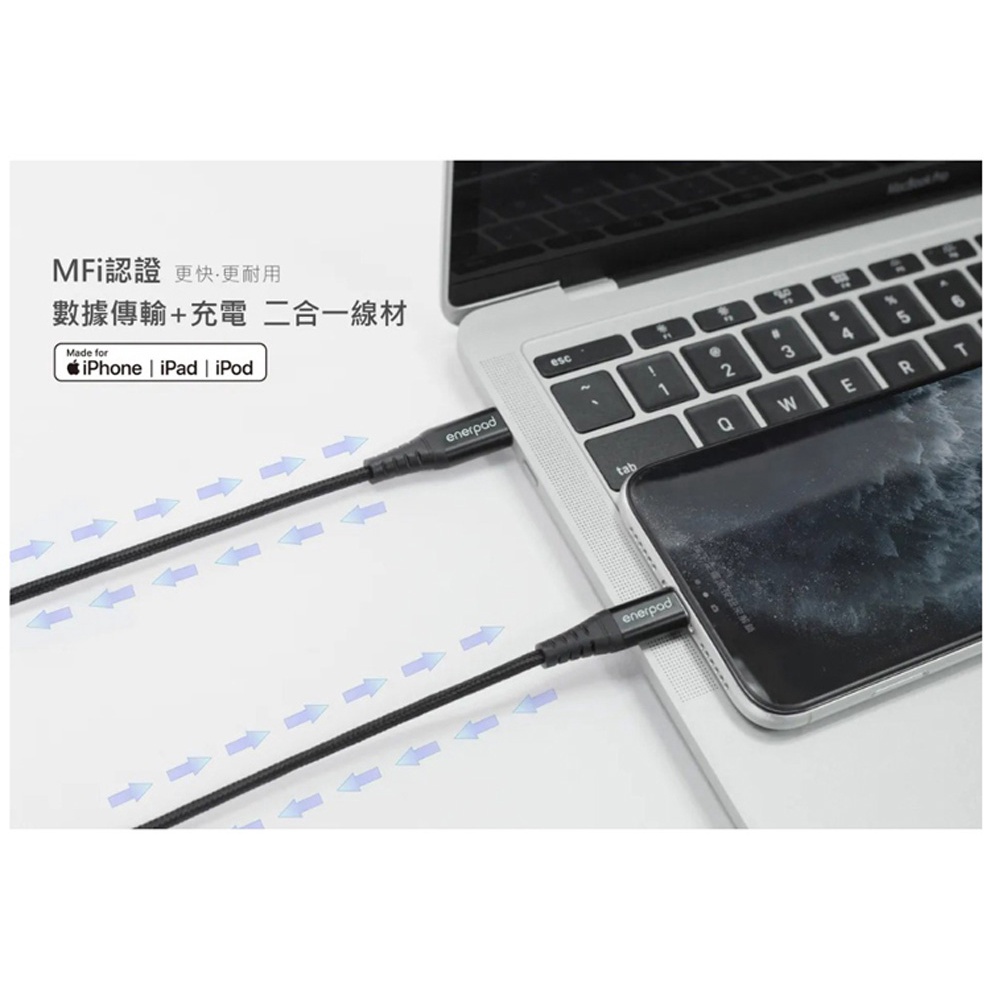 Enerpad CL-100 Type-C to Lightning 1M MFi 充電傳輸線 /紐頓e世界