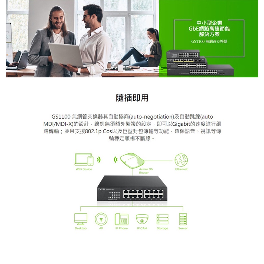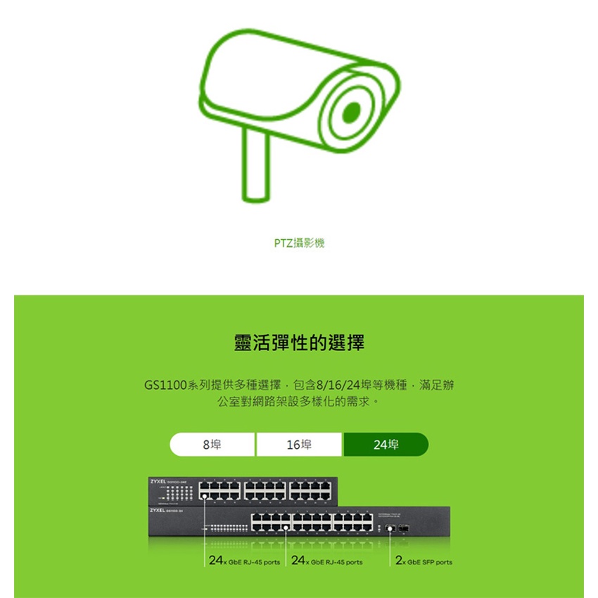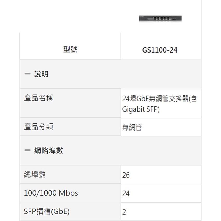 ZyXEL 合勤 GS-1100-24 V3 24埠 GbE 無網管 網路交換器 含2埠 Gigabit SFP插槽
