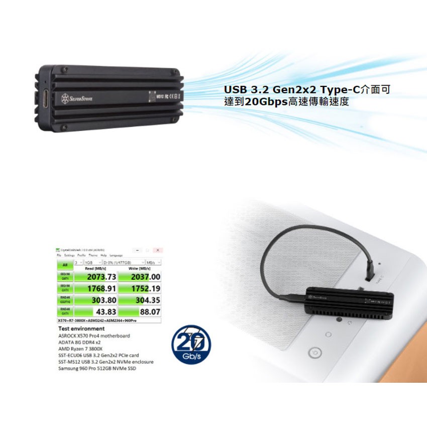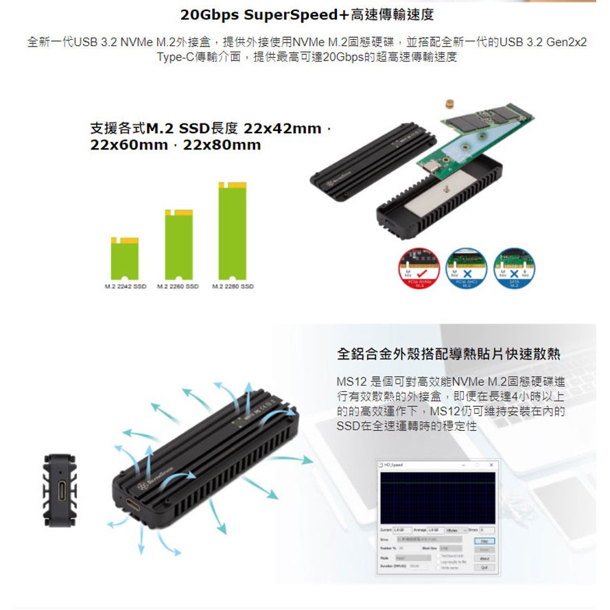 SilverStone 銀欣 SST-MS12 USB3.2 Type-C轉NVMe M.2 SSD外接盒 /紐頓e世界