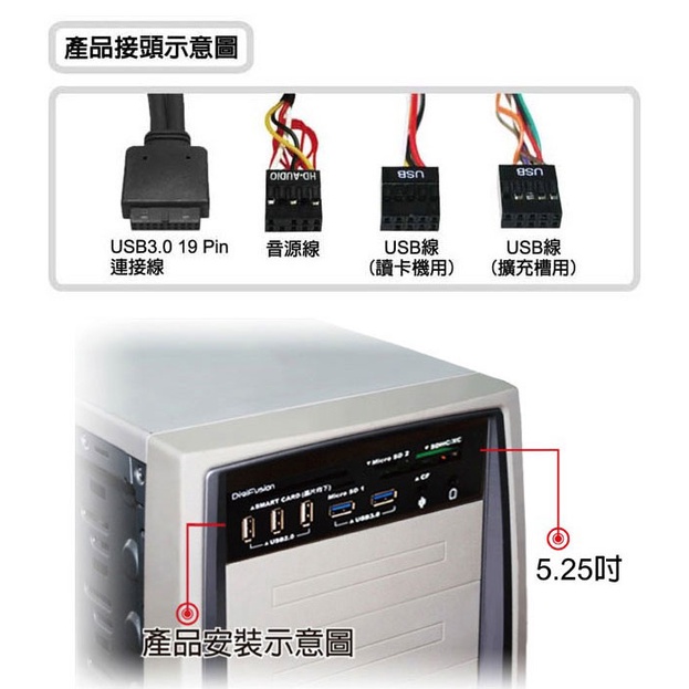 伽利略 5.25吋 多介面整合器 RHU03B ( ATM讀卡機 / USB2.0+3.0HUB / AUDIO)