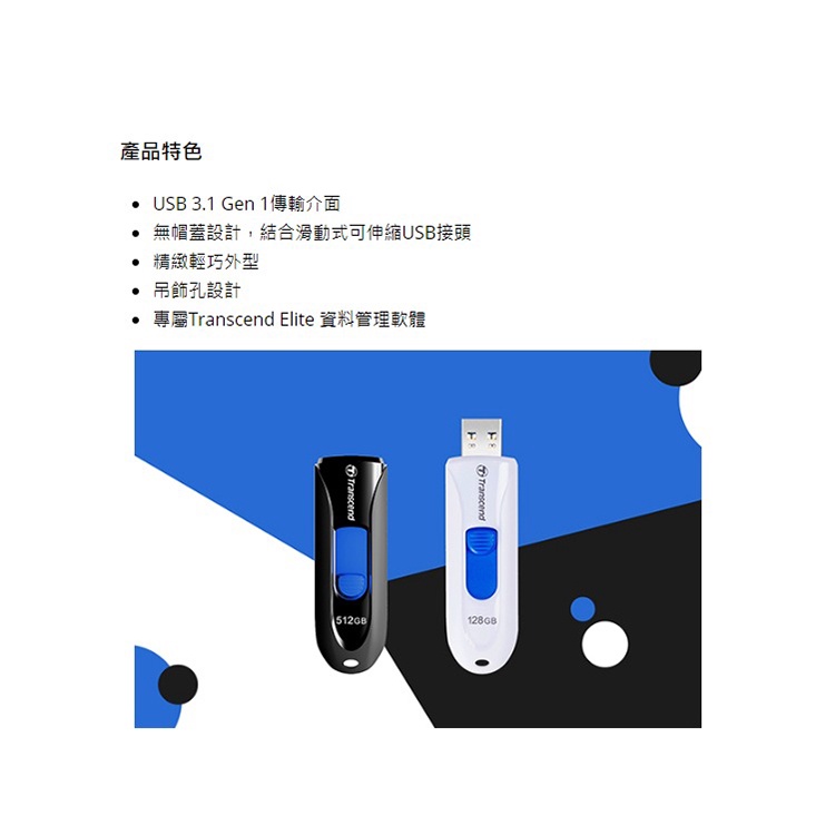 Transcend 創見 JetFlash 790 512GB USB 3.1 隨身碟 藍黑色 /紐頓e世界