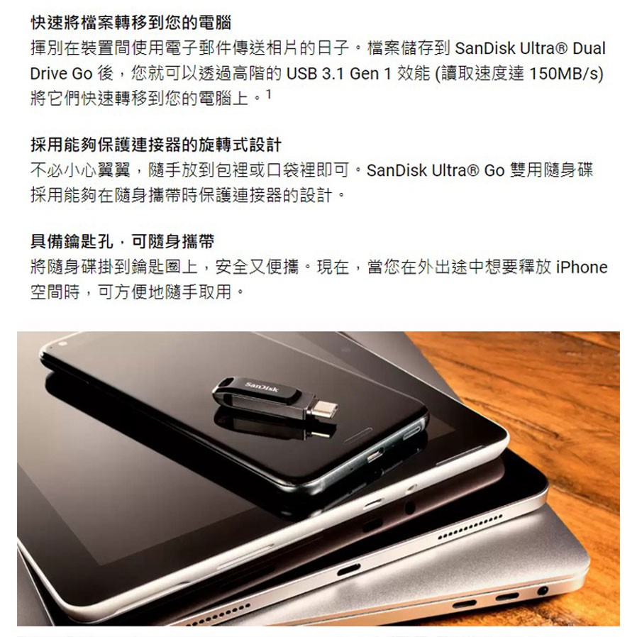 SanDisk Ultra Go USB Type-C 水藍色 雙用隨身碟 64GB / 128GB /紐頓e世界