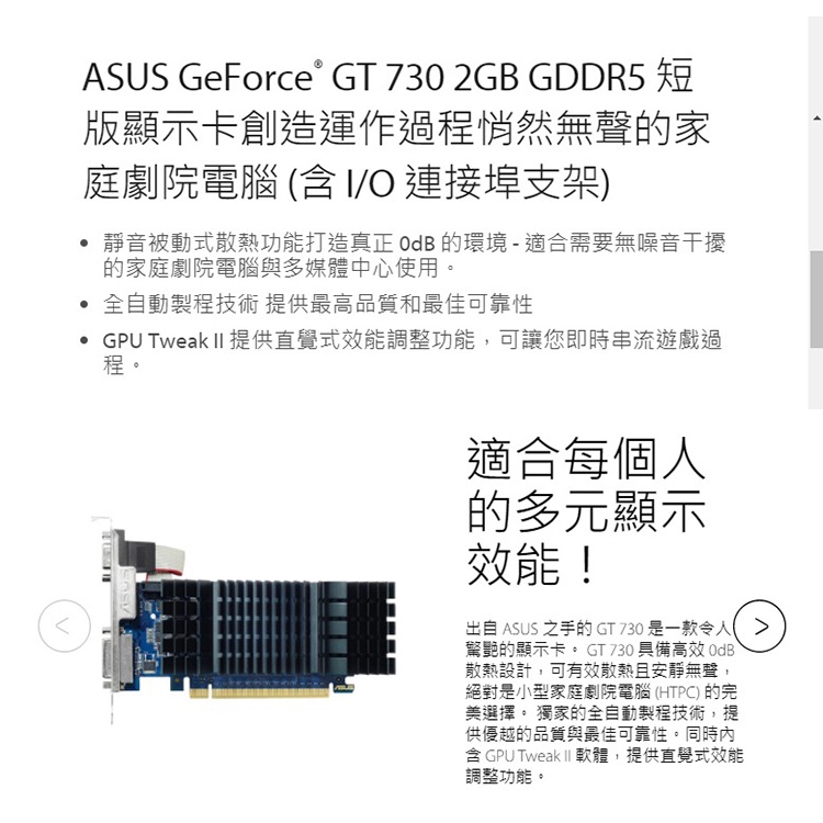 ASUS 華碩 GT730-SL-2GD5-BRK 顯示卡 / 含短檔板 /紐頓e世界