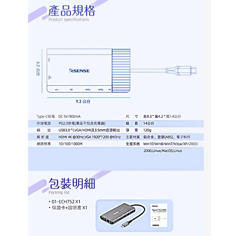 Esense 逸盛 ECH752 Type-C TO HDMI 8合1 轉接器 01-ECH752 /紐頓e世界