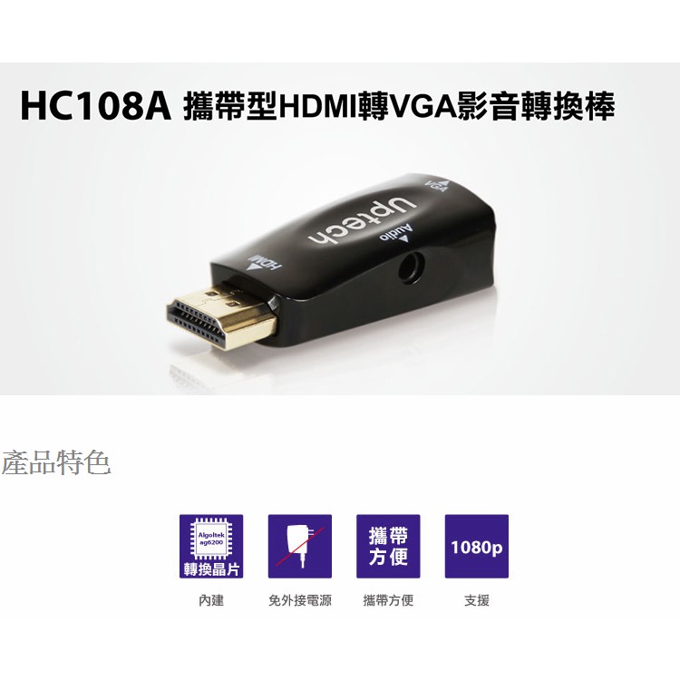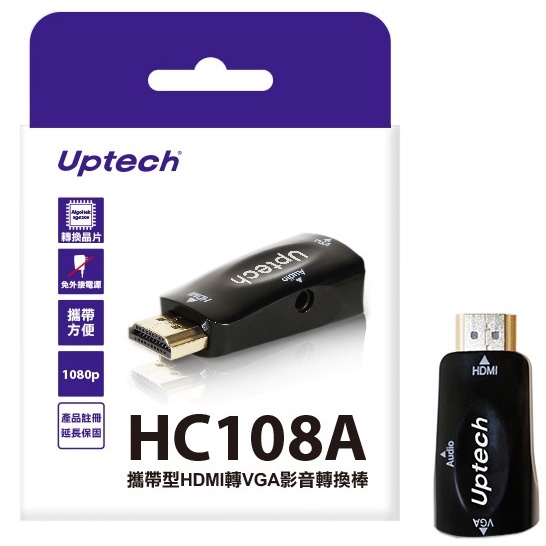 UPTECH 登昌恆 HC108A 攜帶型 HDMI 公 轉 VGA 母 轉換器 /紐頓e世界