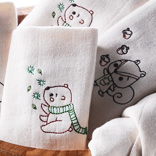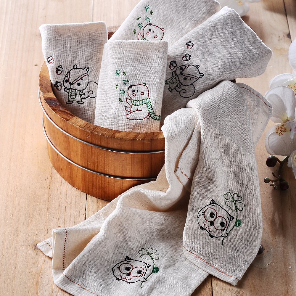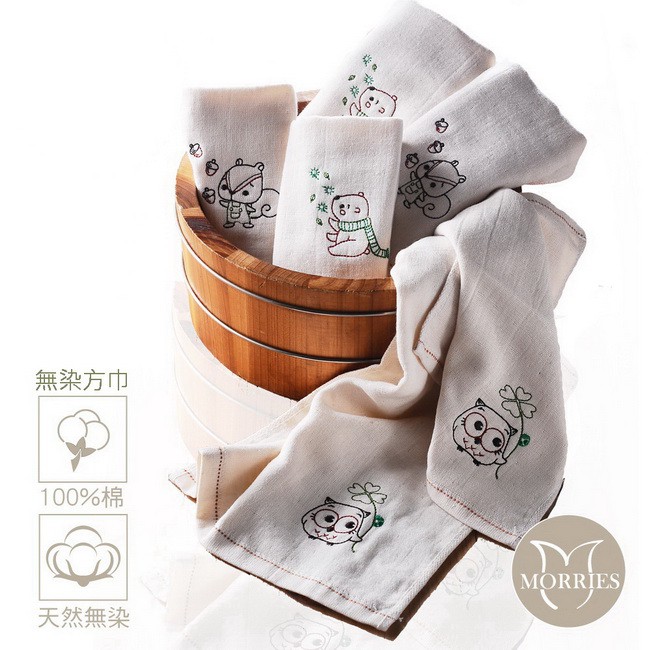 MORRIES 10入組天然原棉無染紗童巾組-精織童繡3款HP4141
