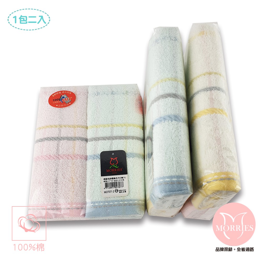 【MORRIES】純棉高級紗緞條毛巾 2入量販包-#M2707-2