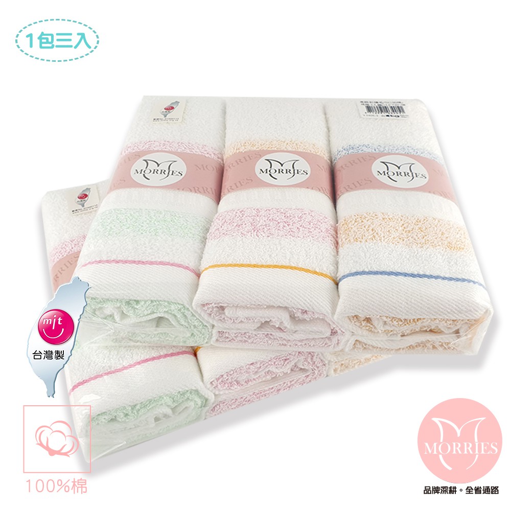 【MORRIES】純棉粉彩條毛巾量販包-(每包3入)#V3405