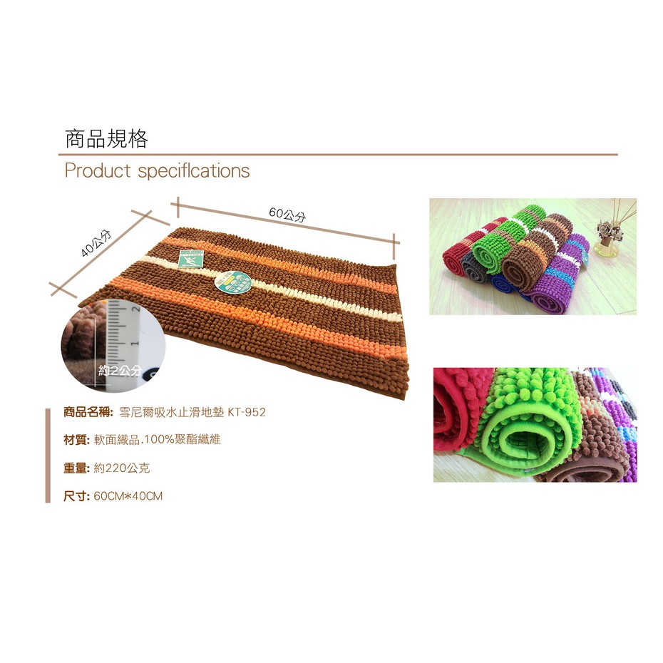 【MORRIES 莫利仕】威力阪條雪尼爾吸水止滑地墊40*60cm KT952
