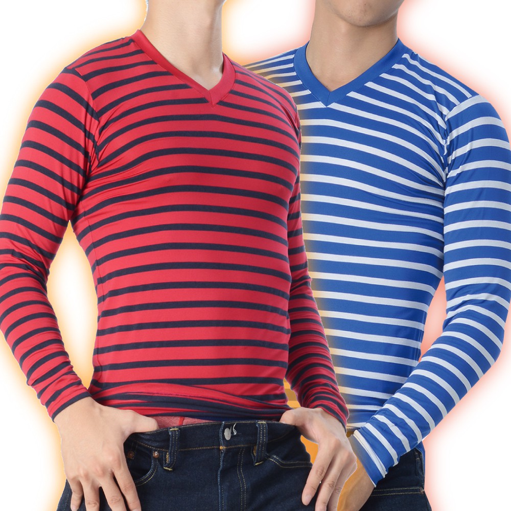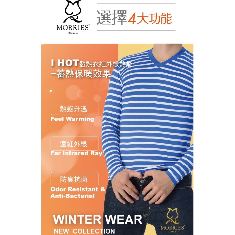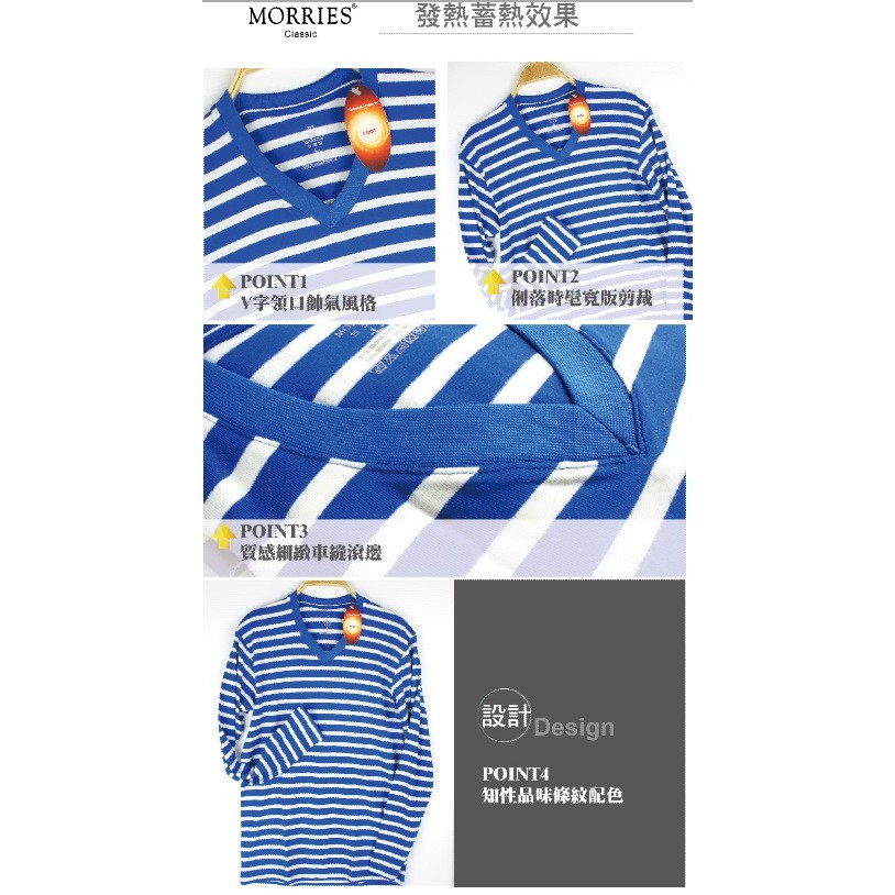 【MORRIES莫利仕】發熱棉透氣男發熱衣-彩條3色MR787台灣製