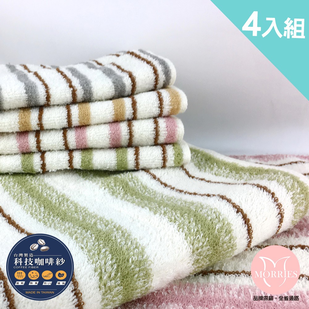 【MORRIES 】4入組條紋咖啡紗毛巾CF6313(微笑標章.26年台廠.四色組)