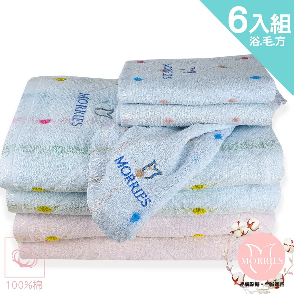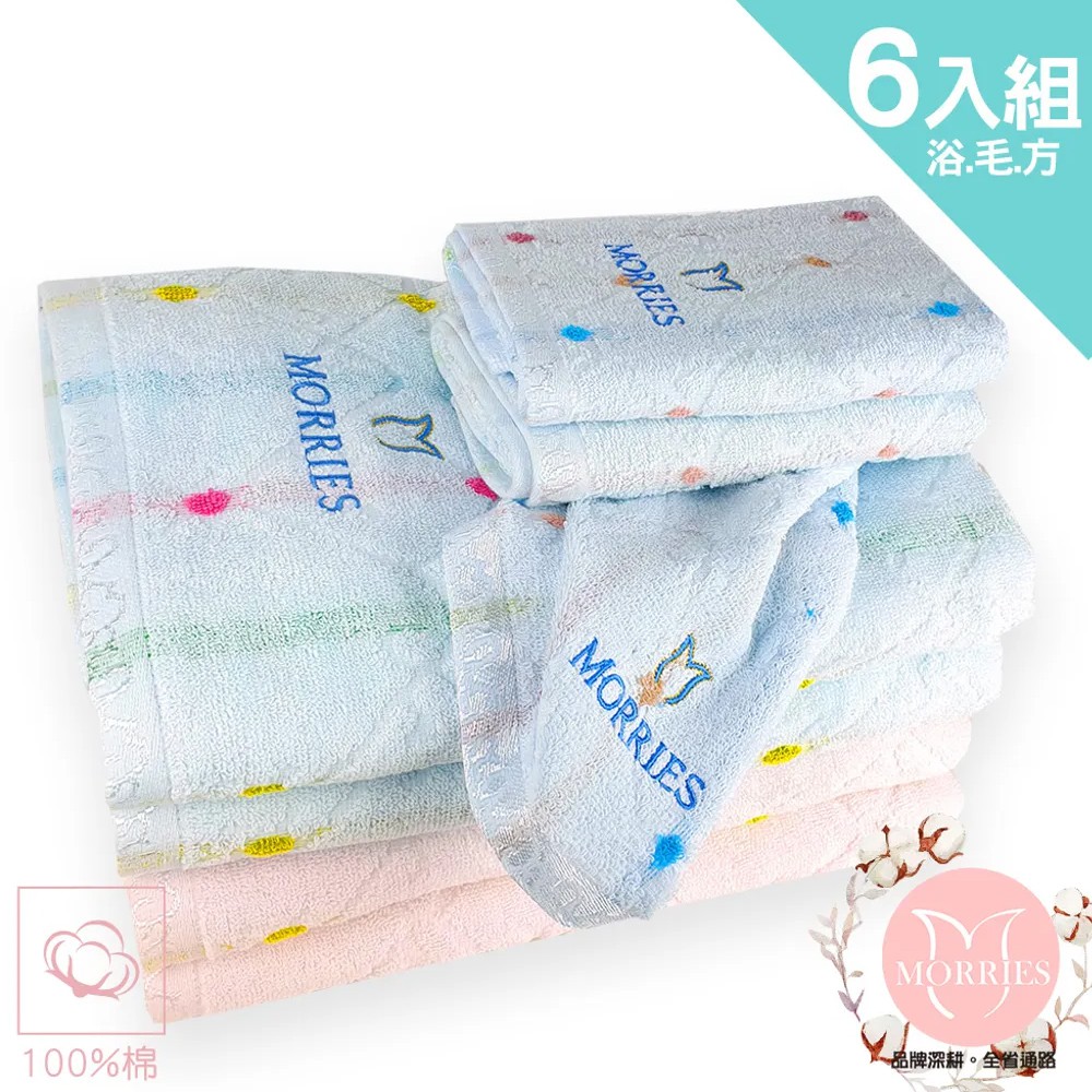 【MORRIES莫利仕】6件組純棉32支粉彩星點毛方浴套組M73-2-107微笑標章.26年台廠.情侶雙色組