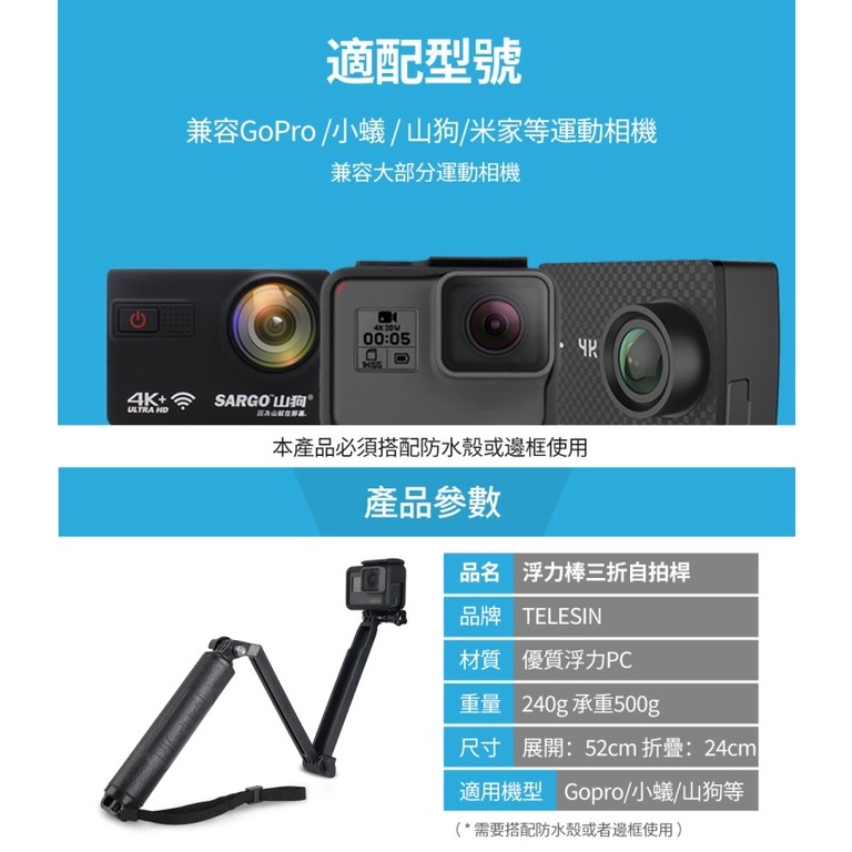 TELESIN 高品質3-WAY自拍桿(浮力版) GOPRO通用配件 浮潛必備 台灣公司貨 泰迅