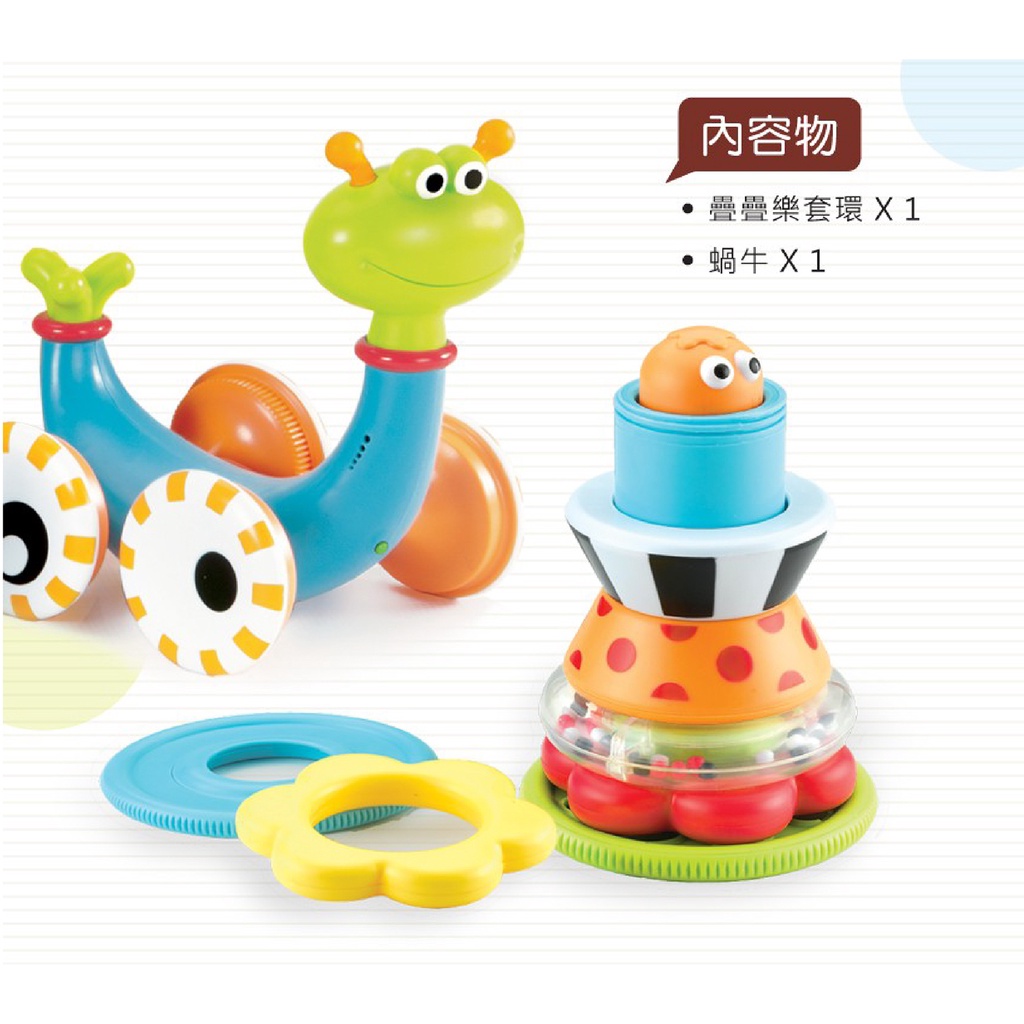 Yookidoo 以色列 感統嬰幼兒玩具-疊疊樂音樂蝸牛/串珠呱呱鴨拉車【朶玫黎官方直營】