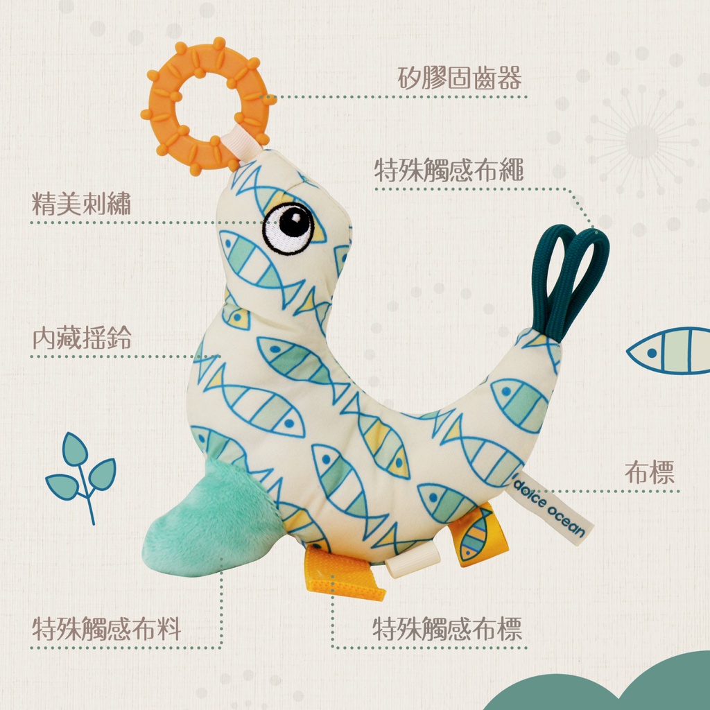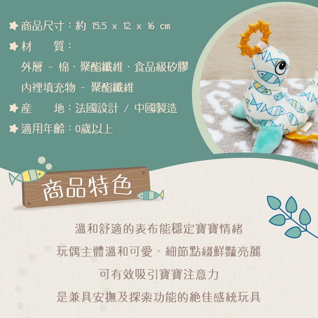 Dolce 法國 感統嬰幼兒玩偶-拍拍手西萊恩(海洋系列) 彌月禮【朶玫黎官方直營】