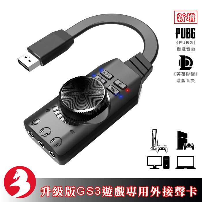 浦記外接音效卡GS3 MARK 2聲卡免驅動模擬7.1聲道升級版PUBG英雄聯盟電腦 PS4 PS5 XBOX通用