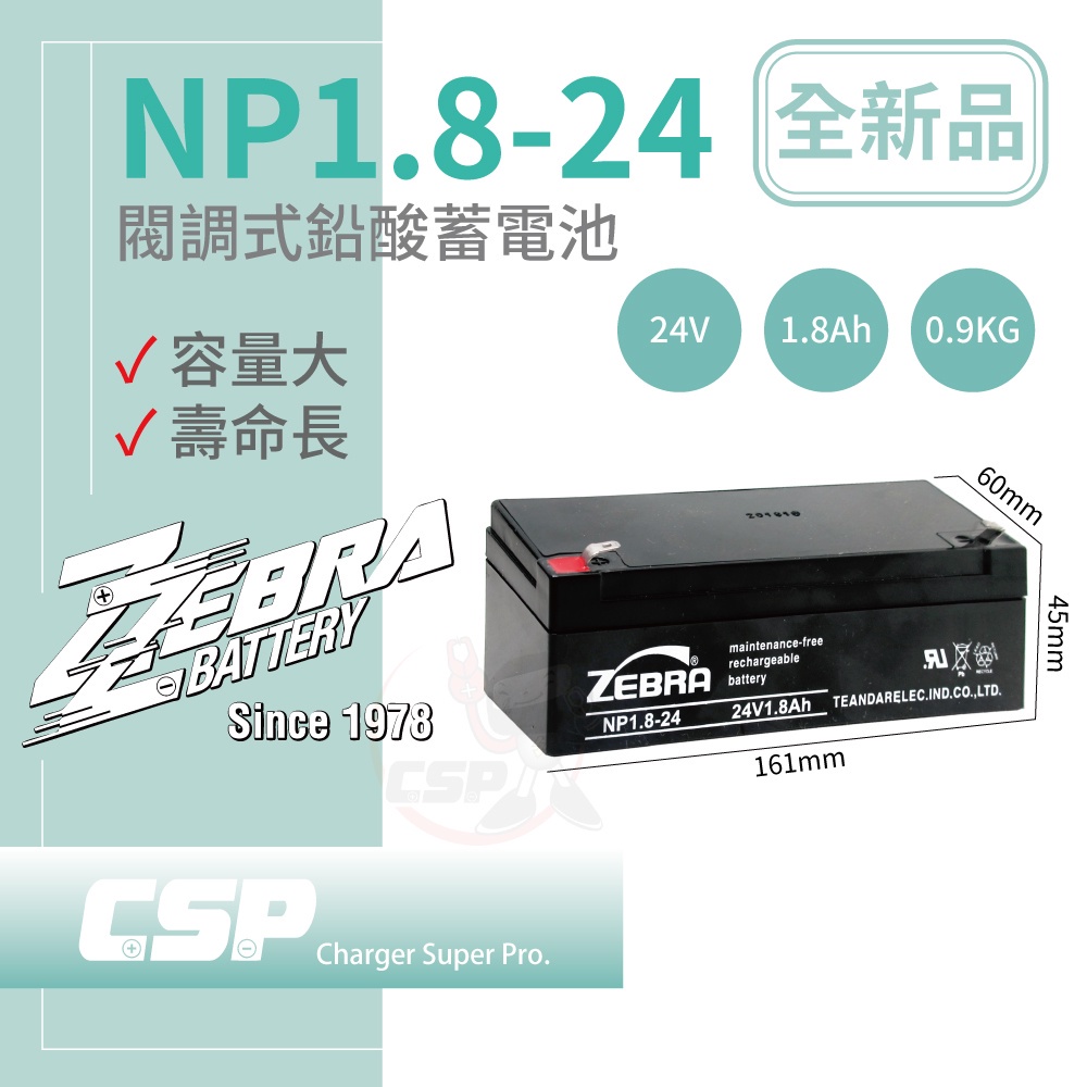 【童車電池】CSP NP1.8-24 (24V1.8Ah)鉛酸電池 消防受信總機 廣播主機(台灣製)