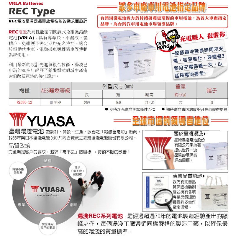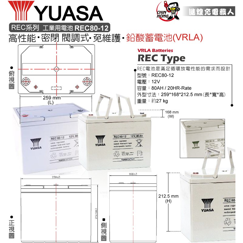 【YUASA】REC80-12 鉛酸電池12V80Ah 電動車用電池 釣魚用電池 捲線器用電池 UPS用電池 湯淺