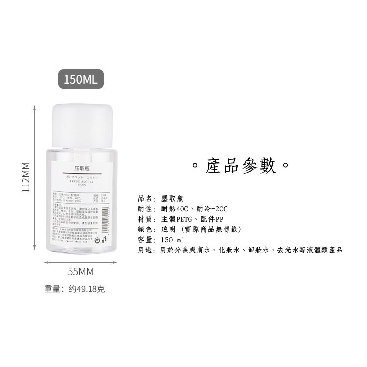 150ml按壓瓶 旅行分裝瓶 加蓋不怕滲漏 化妝水爽膚水卸妝液卸甲水 簡約風
