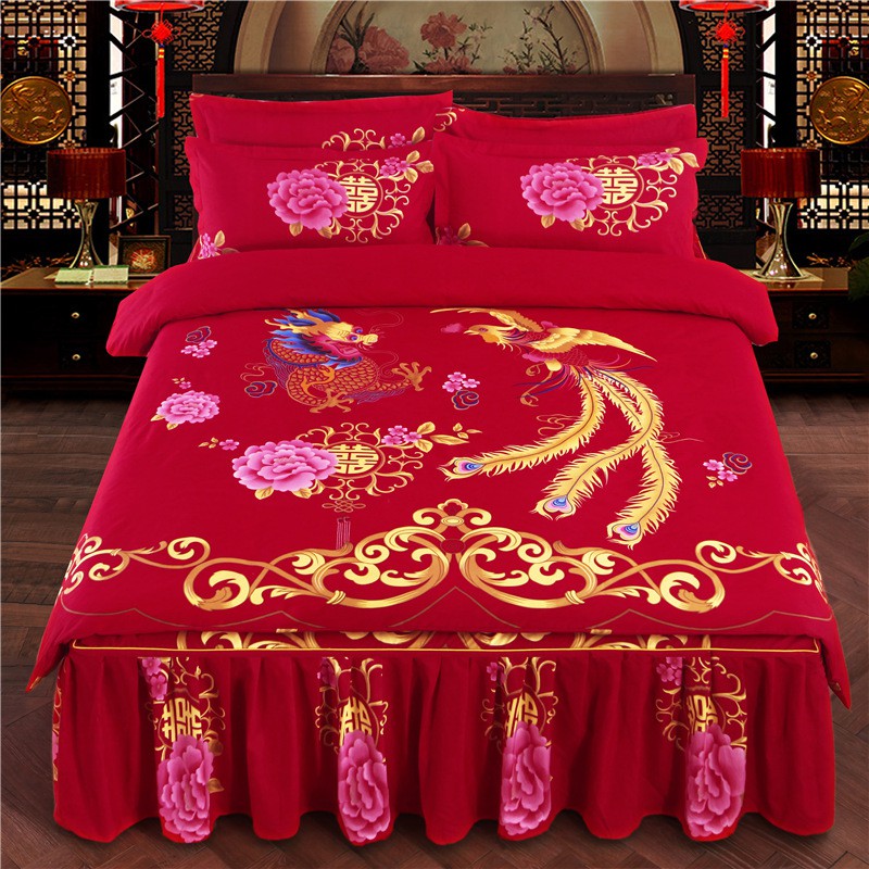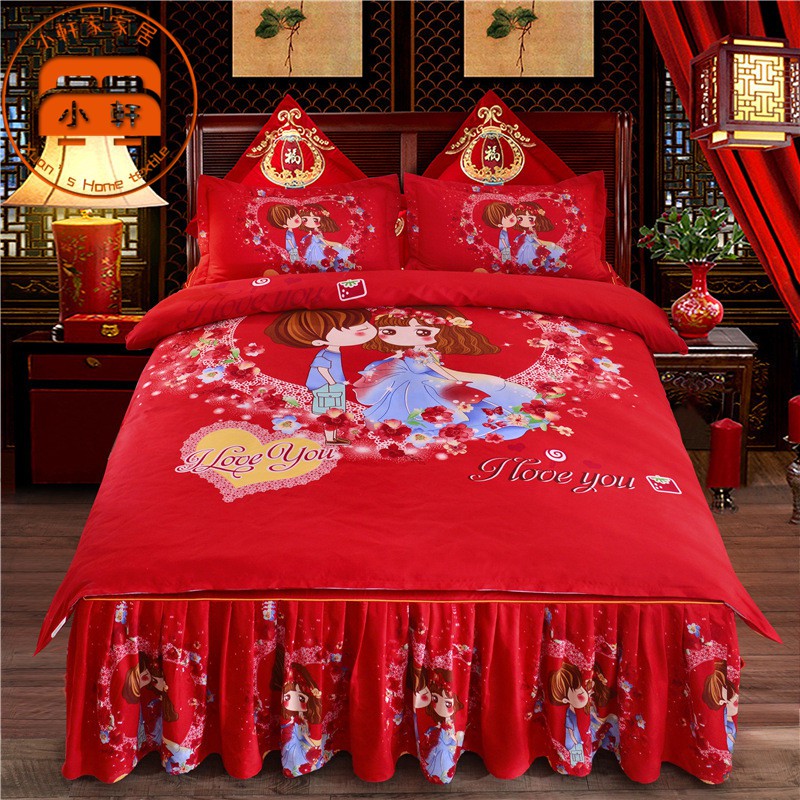 結婚喜慶床裙四件組 床罩 床單 單人雙人加大特大 頂級舒柔棉 超親膚裸睡級別 被單 枕套 小軒家家居