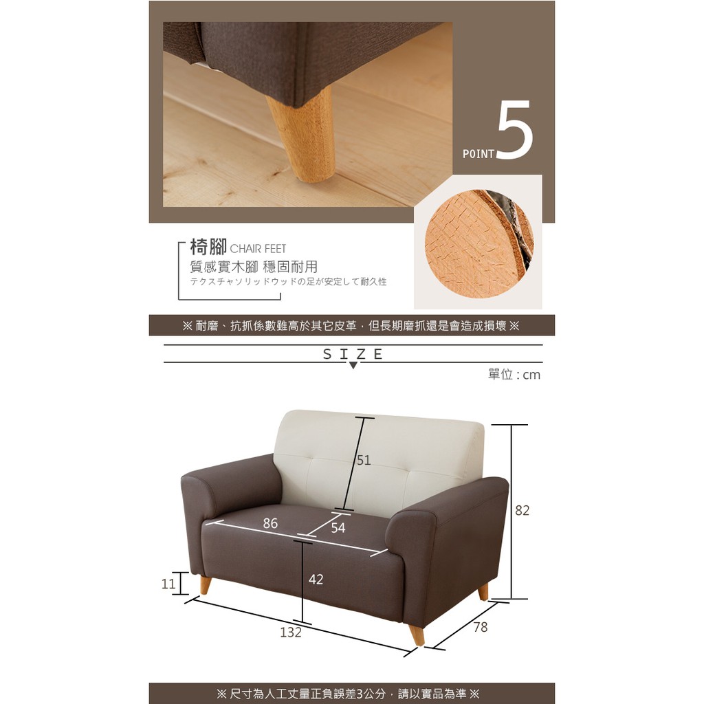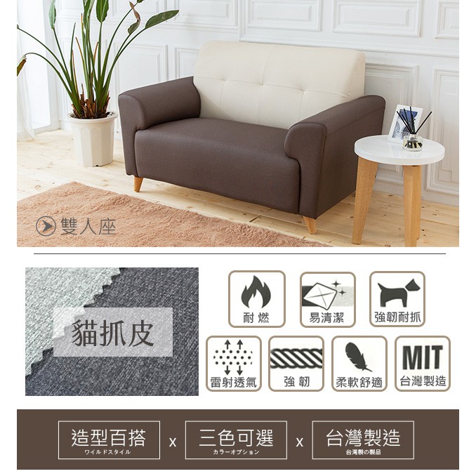 布萊茲雙人座雙色透氣貓抓皮沙發 台灣製造 可訂製尺寸