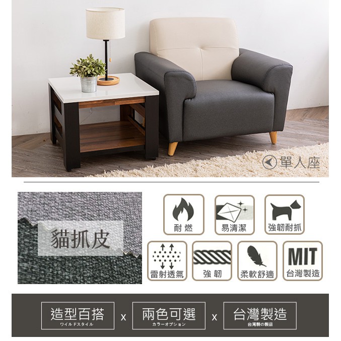 畢維斯單人座雙色透氣貓抓皮沙發 台灣製造 可訂製尺寸