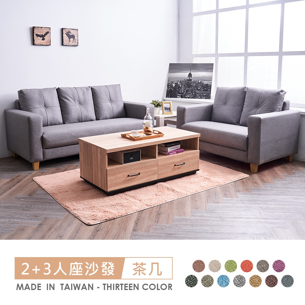 伊奈2+3人座中鋼彈簧貓抓皮沙發+瑞斯橡木大茶几 台灣製造 可訂製尺寸