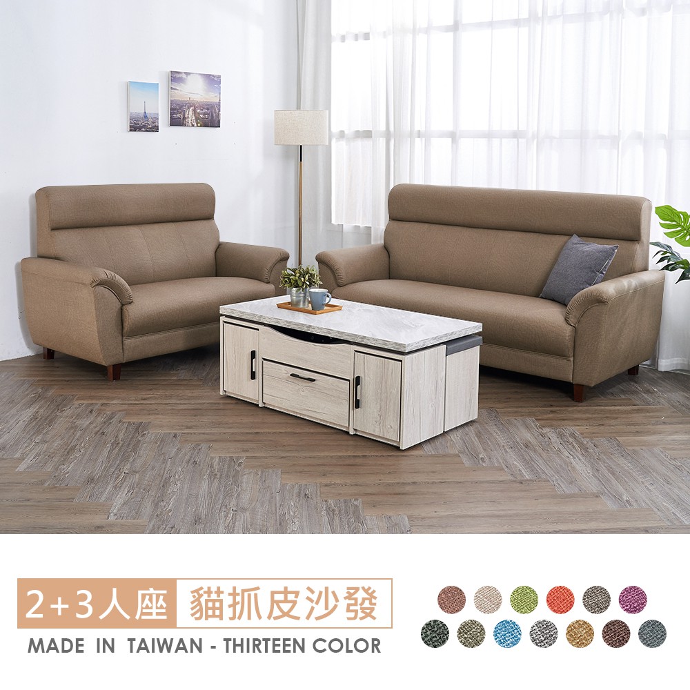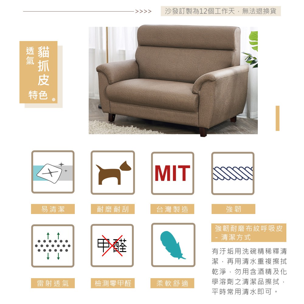 安格斯2+3人座透氣貓抓皮沙發