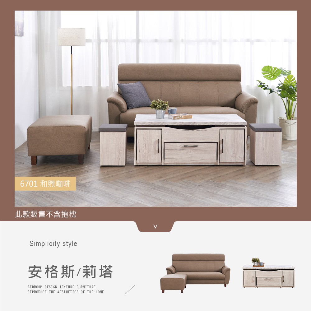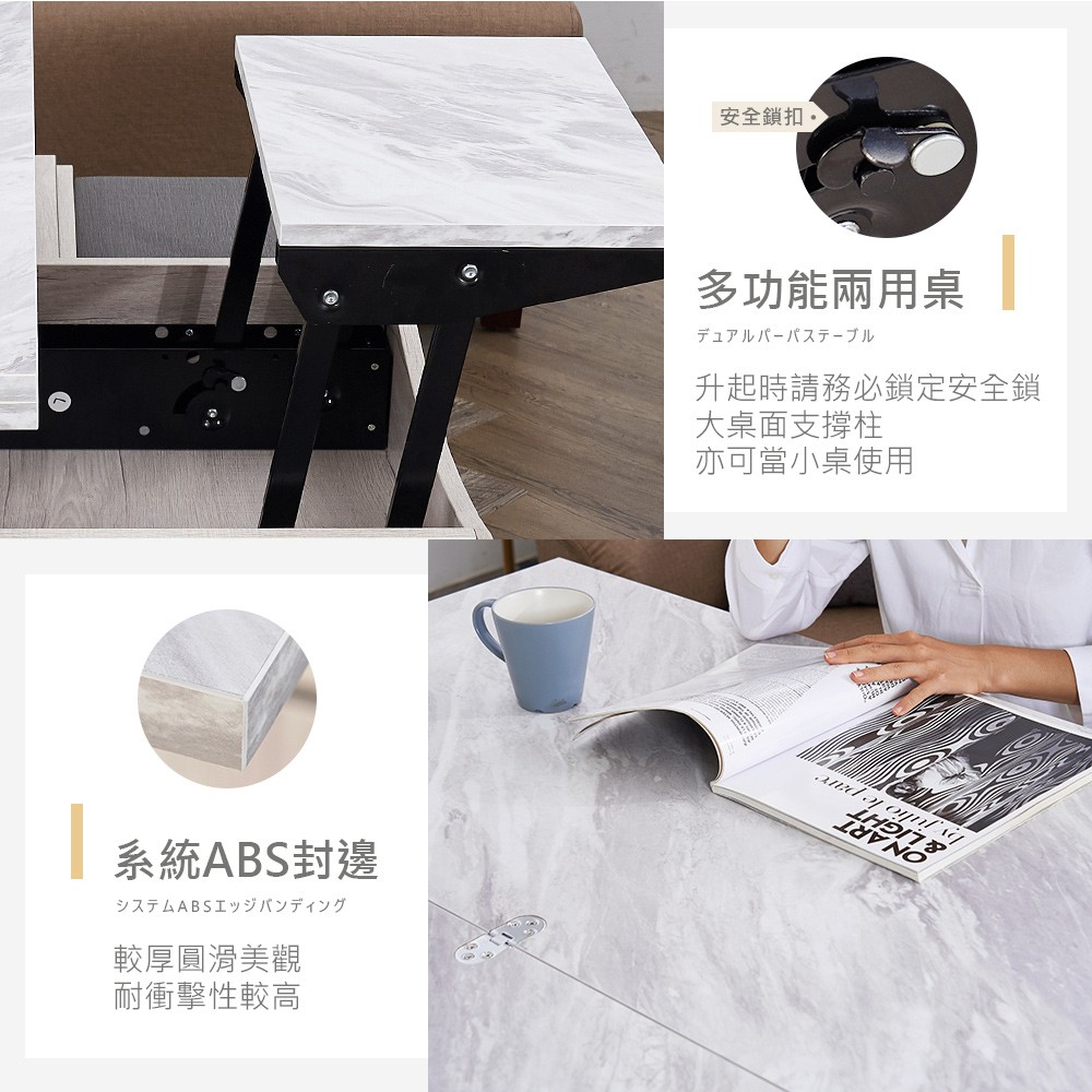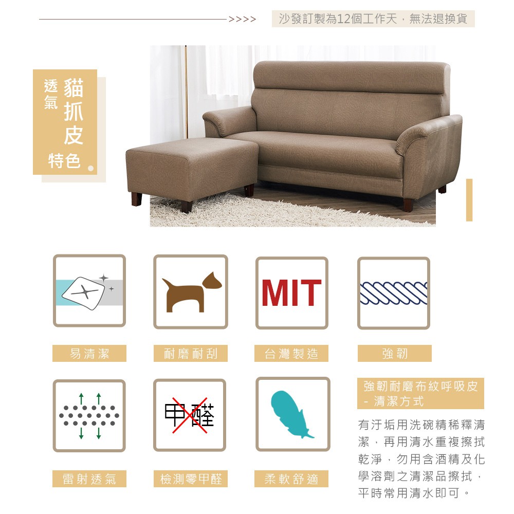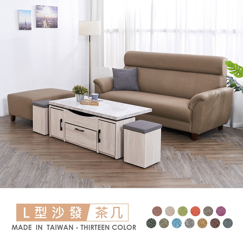 安格斯小L型透氣貓抓皮沙發+莉塔4尺緩衝升降茶几