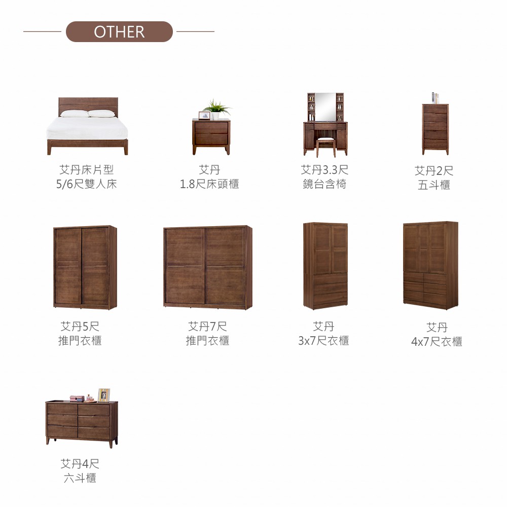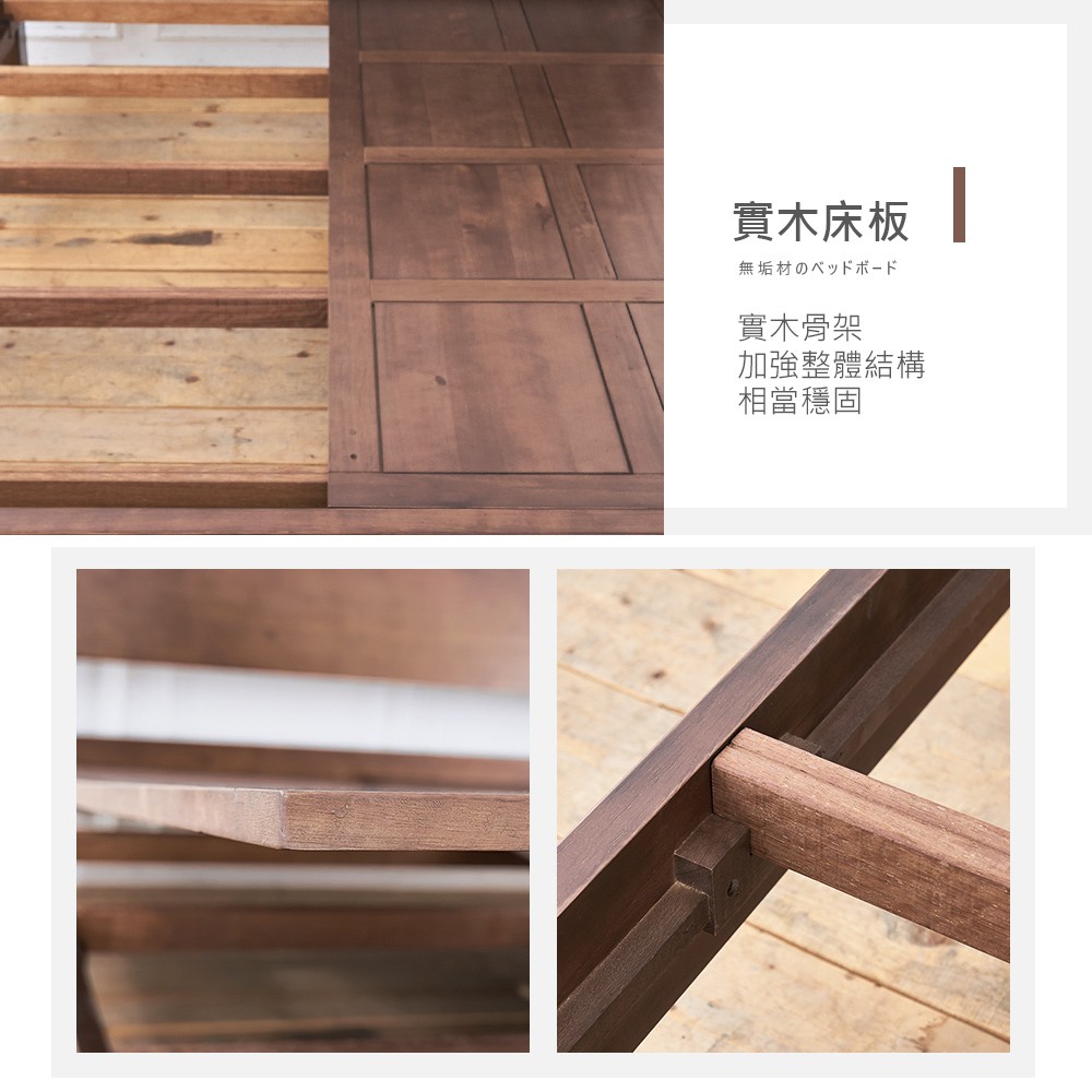艾丹淺胡桃6尺全實木床片型加大雙人床