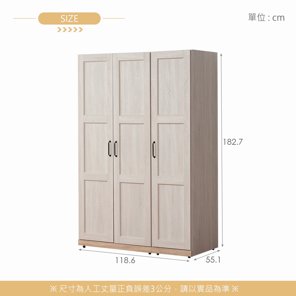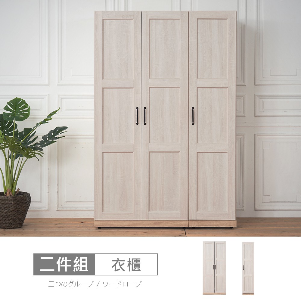 諾拉莊園3.9尺木心板右門雙門衣櫃