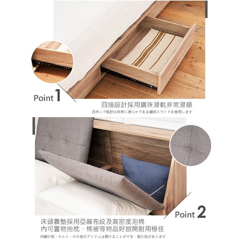 奧爾頓橡木5尺床箱型3件組-床箱+床底+床頭櫃