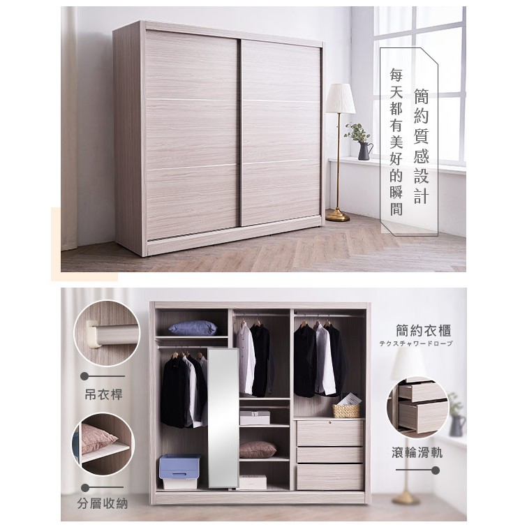 波特白梣木7x7尺推門木心板衣櫃