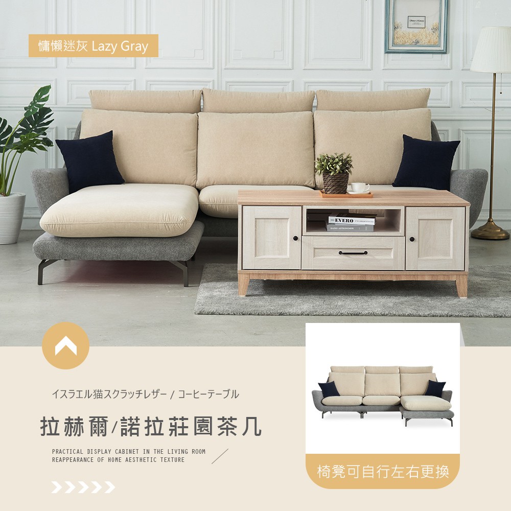 拉赫爾以色列貓抓布雙色L型沙發+諾拉莊園大茶几