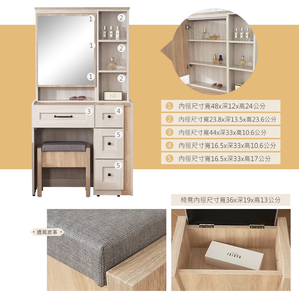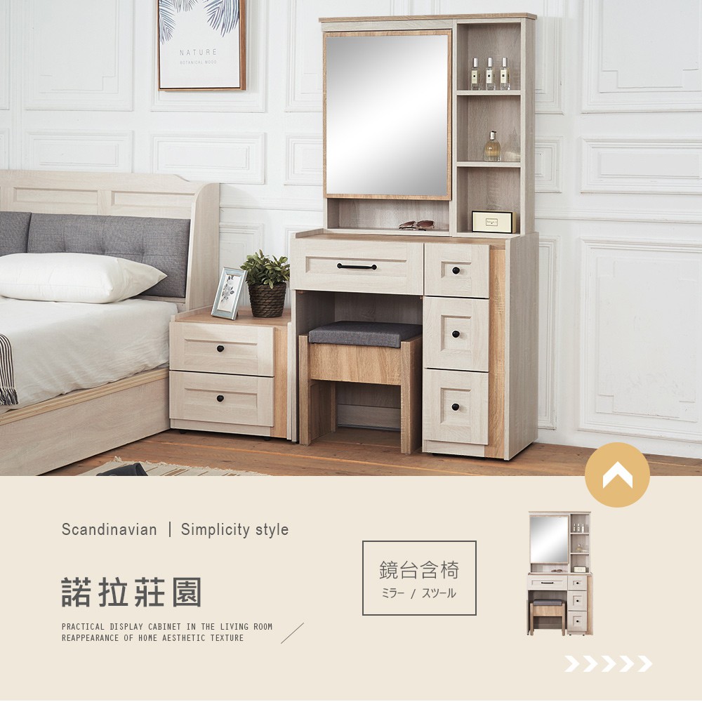諾拉莊園2.7尺鏡台-含椅子