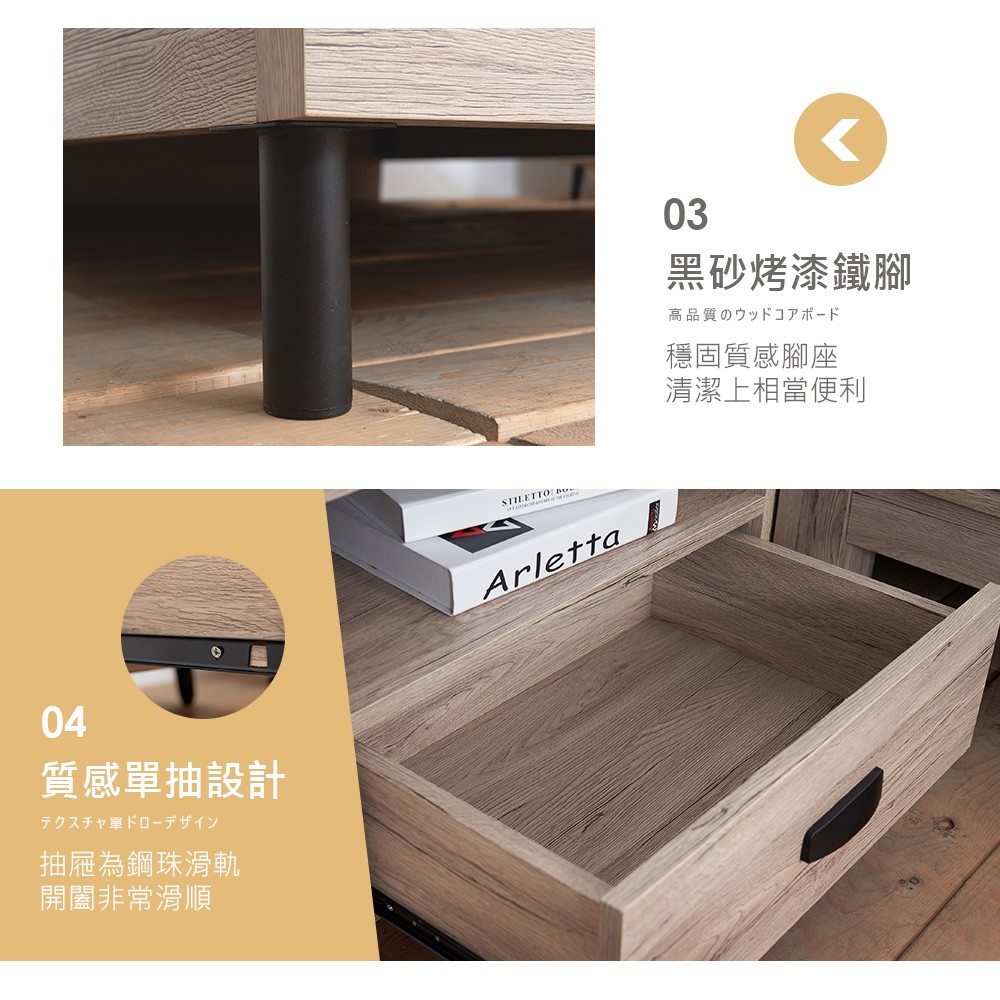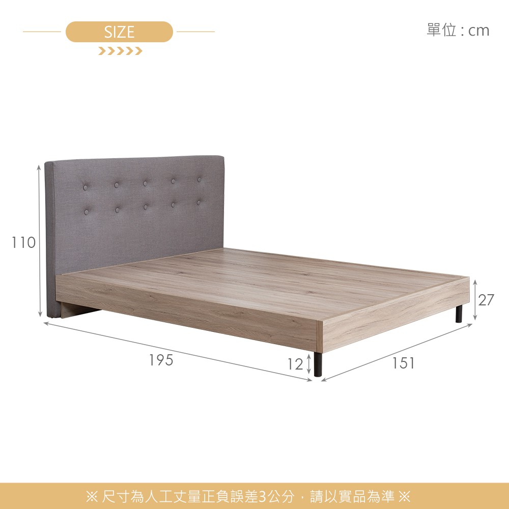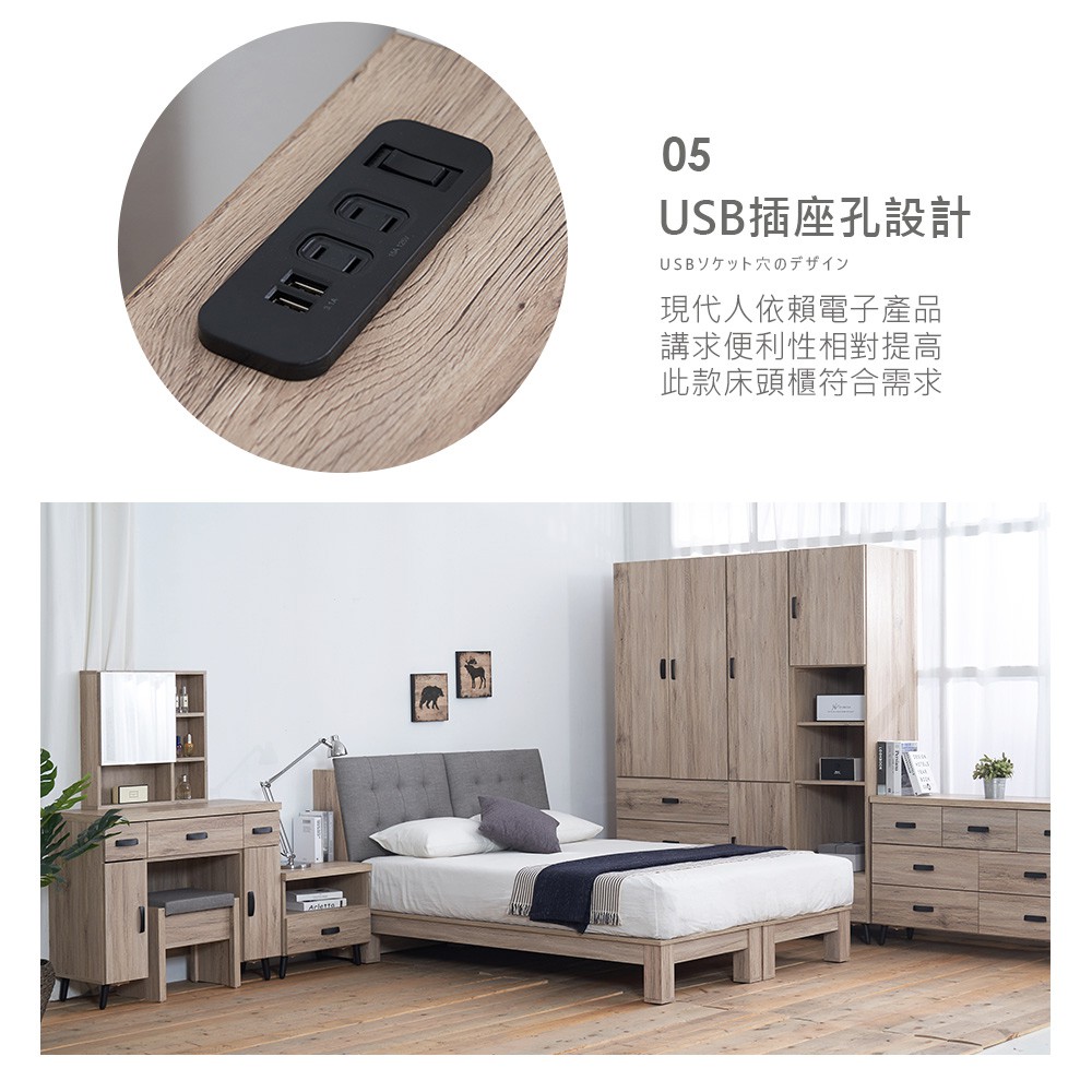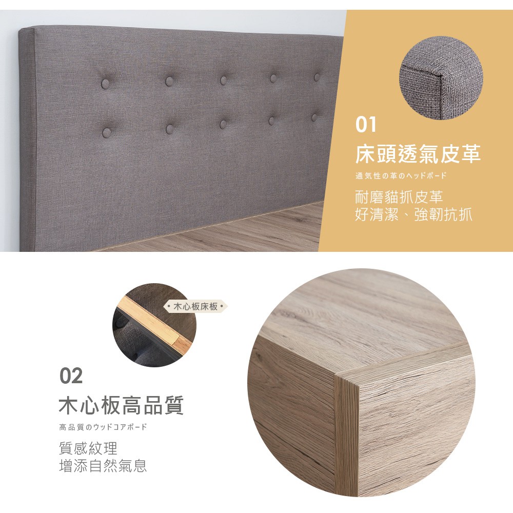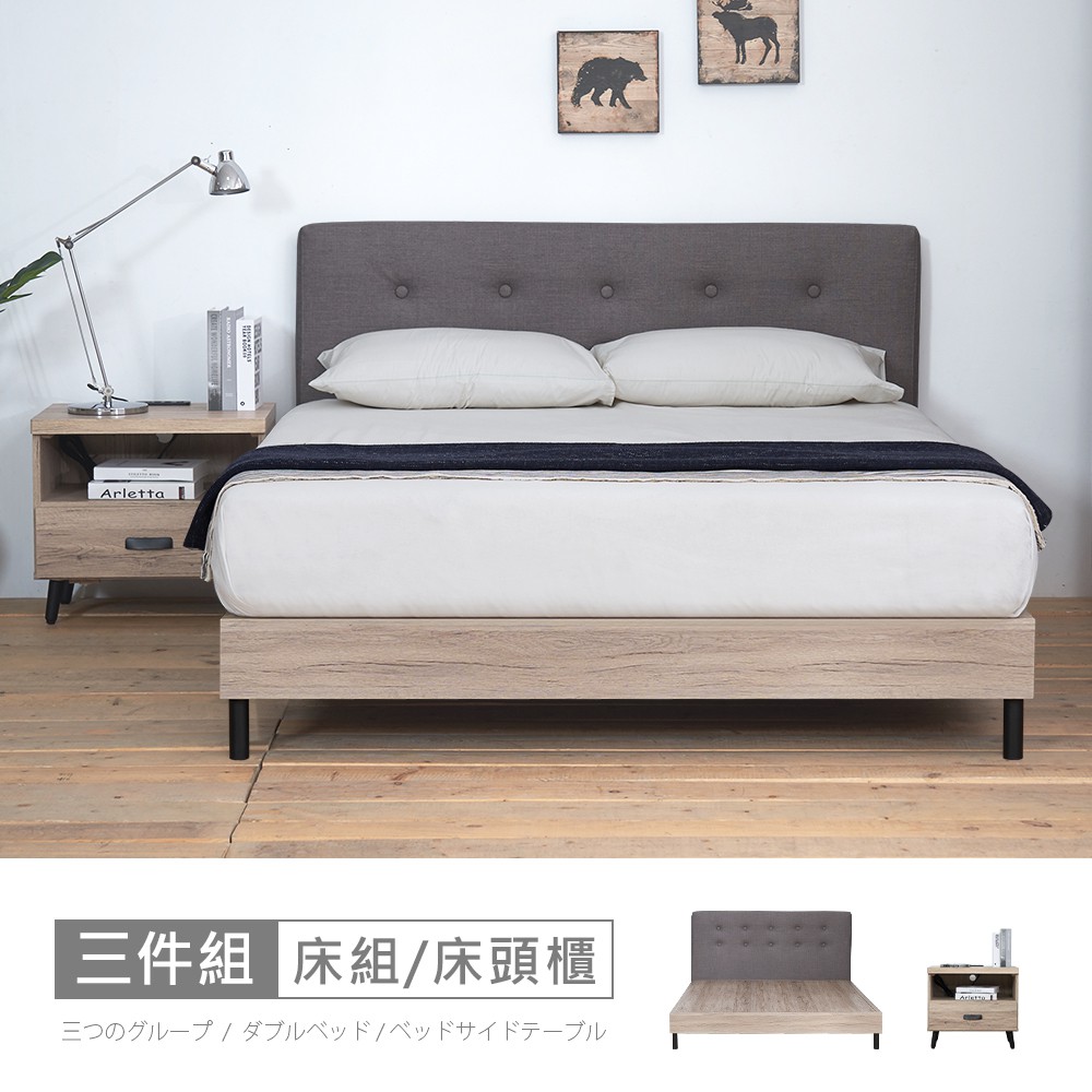 亞曼達5尺床片型3件組-床片+床底+床頭櫃